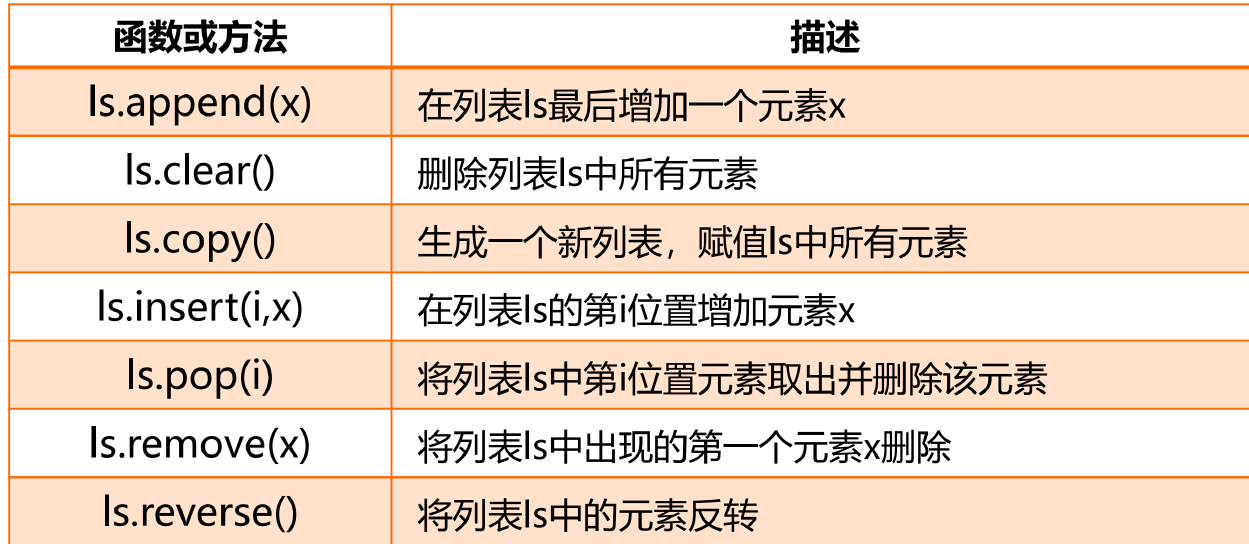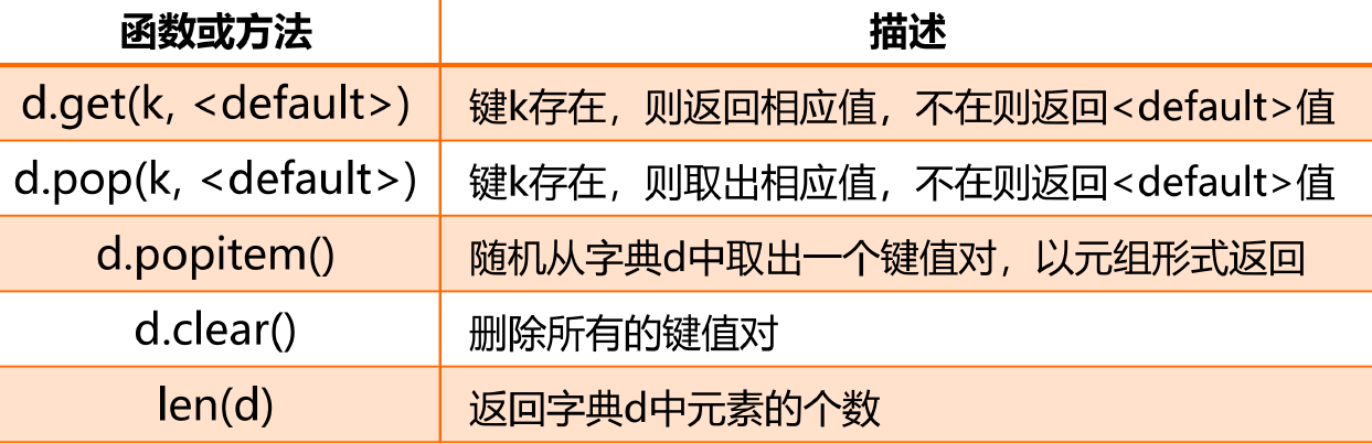 通用函数和方法:len(s)\min(s)\max(s)\s.index(x)或s.index(x,i,j)\s.count(x)