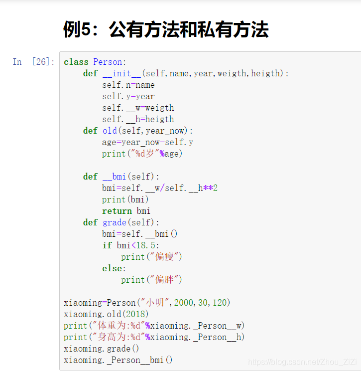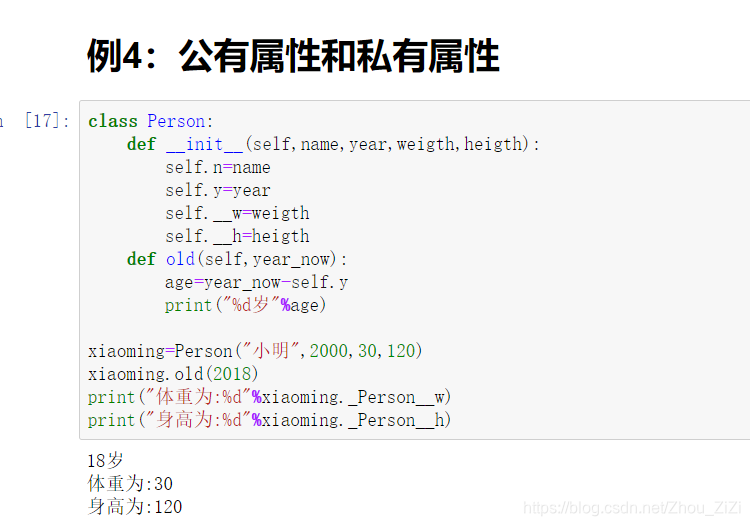 实例属性:在构造函数__init__中定义的,定义时以self为前缀,只能通过对象名访问。