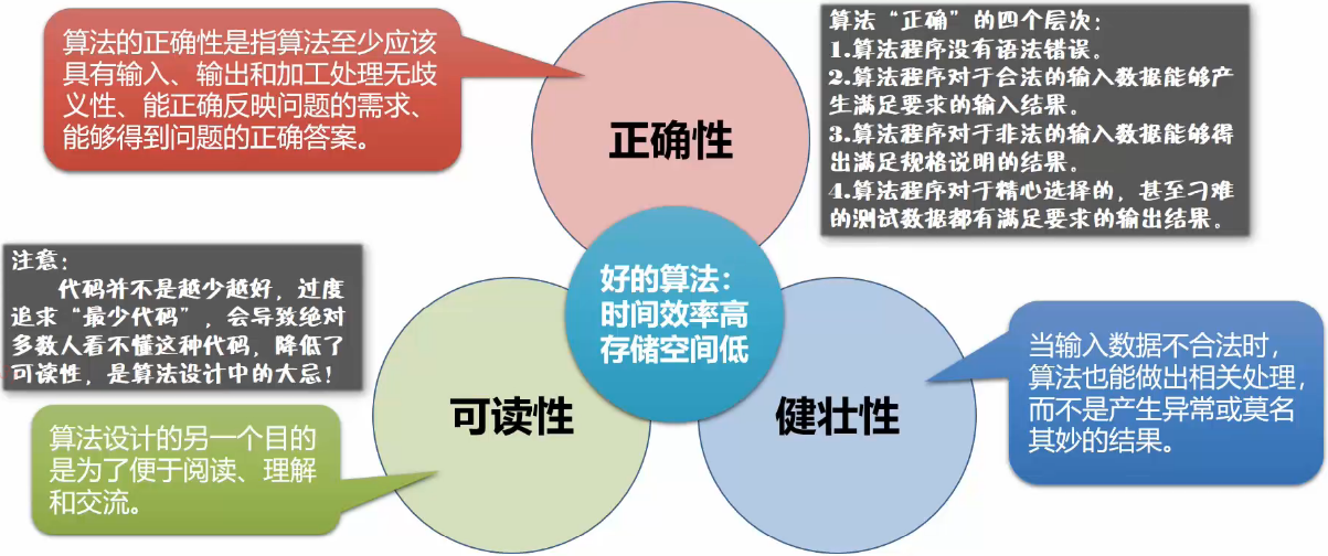 - 正确性:算法的正确性是评价一个算法优劣的最重要的标准。