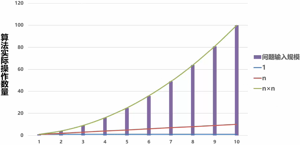 同时我们通过这个例子可以看出:最高次项的相乘的常数并不重要;函数随着n的增长,最高次项的指数越大,结果也会变得增长特别快。所以在判断算法效率的时候,函数中的常数和其他次要项可以忽略,而应该关注最高阶项的阶数。
