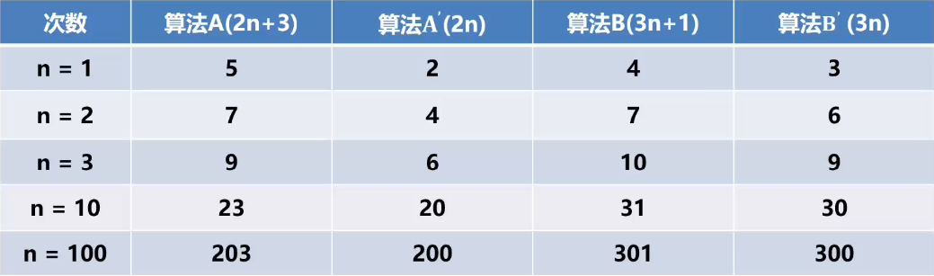- 在修改后的运行次数函数中,只保留最高阶项;