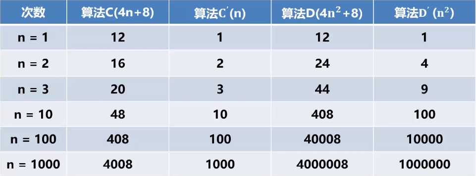 - T(n)表示语句总的执行次数,它是关于问题规模n的函数;