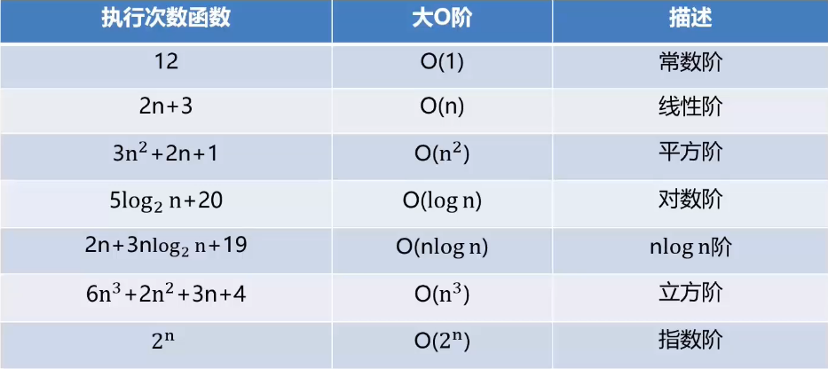 这些时间复杂度都是通过输入规模的不同而不同,总结一下: