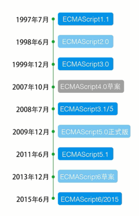 随着计算机语言和互联网的发展,ECMAScript 也在不断的升级更新,从最初的 ES1.1 版本升级到现在 ES6,中间经历了众多版本。