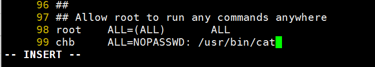 注意:只有root用户才可以使用visudo命令编辑sudo服务的配置文件。