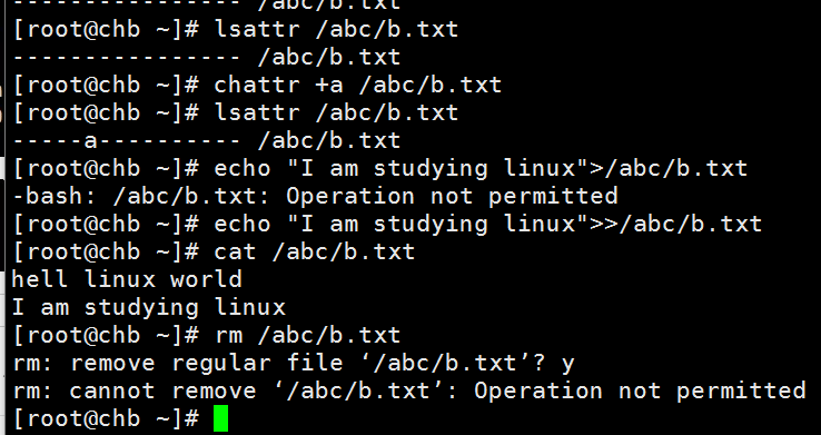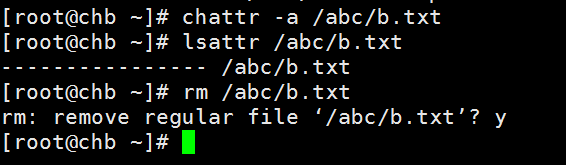 若要取消隐藏权限,则用chattr -[参数] 即可。