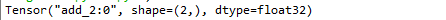 意思是result是一个名称为add_2:0的张量,shape=(2,)表示一维数组长度为2,dtype=float32表示数据类型为浮点型。