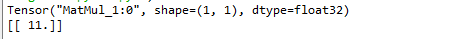我们可以看出,运行Session()会话前只打印出y是个张量的提示,运行Session()会话后打印出了y的结果1.0*3.0+2.0*4.0=11.0。
