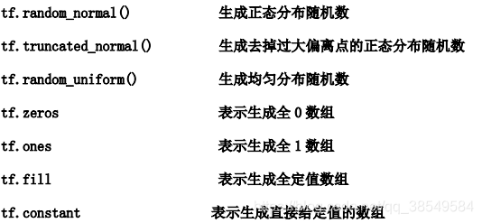神经网络的参数:是指神经元线上的权重w,用变量表示,一般会随机生成这些参数。生成参数的方法是让w等于tf.Variable,把生成的方式写在括号里。