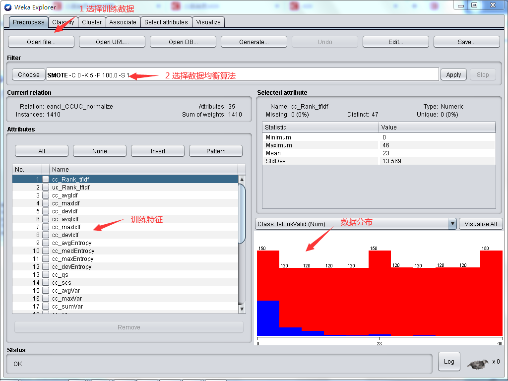 (2)SMOTE平衡数据(weka提供了这个功能,可以不使用该代码)