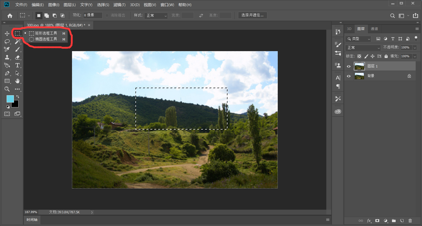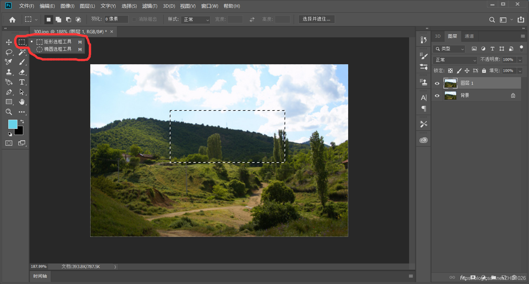 这里说规则主要指矩形选框和椭圆选框,具体位置如图所示: