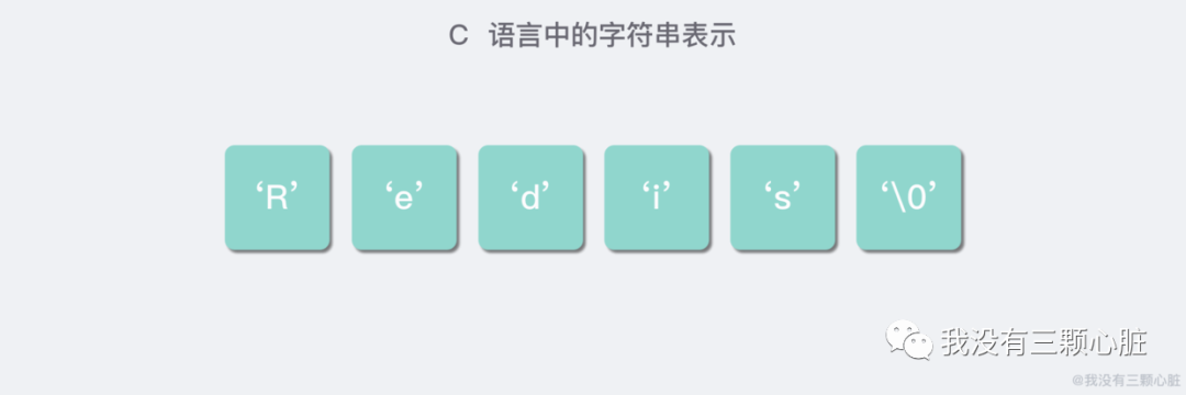 为什么不考虑直接使用 C 语言的字符串呢?因为 C 语言这种简单的字符串表示方式 不符合 Redis 对字符串在安全性、效率以及功能方面的要求。我们知道,C 语言使用了一个长度为 N+1 的字符数组来表示长度为 N 的字符串,并且字符数组最后一个元素总是 '\0'。(下图就展示了 C 语言中值为 "Redis" 的一个字符数组)