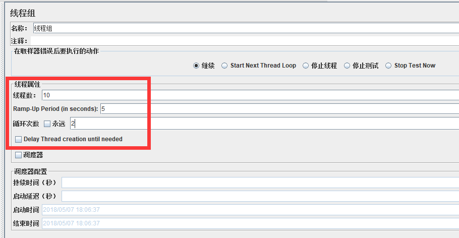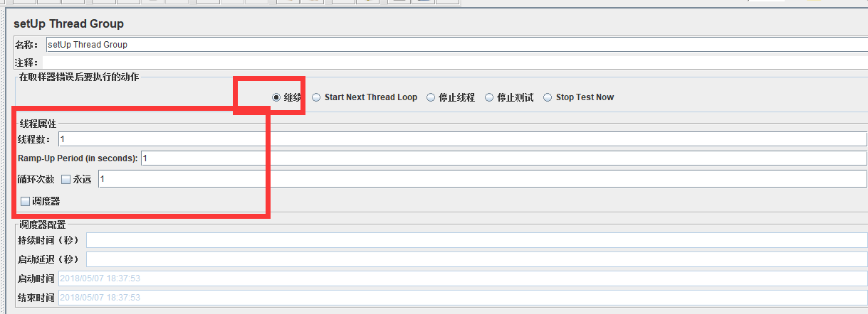 继续:如果取样器里的执行出现错误失败的时候,请求不会停止,继续执行。