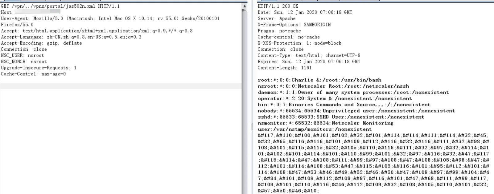 Citrix旗下多款交付控制器和网关存在RCE漏洞,攻击者在无需身份验证的情况下就可执行任意命令。根据其他安全网站的说法,这个RCE漏洞会有一个标记漏洞(其中之一的标记),即本次报道的Citrx路径遍历漏洞(CVE-2019-19781)。Citrx路径遍历漏洞(CVE-2019-19781)利用方式的PoC已被公开。该漏洞利用复杂性低,且无权限要求,攻击者只能遍历vpns文件夹,但攻击者可能利用Citrx路径遍历漏洞进行RCE漏洞试探,从而发起进一步精准攻击。