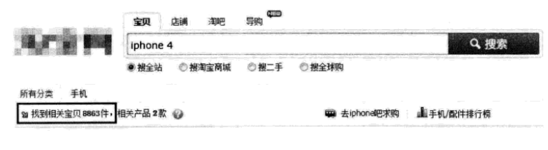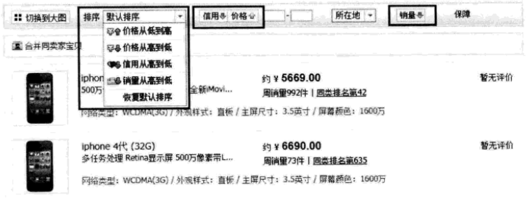 假如我想买一台 iPhone4 的手机,于是上了某电子商务网站去搜索。可搜索后发现(如下图所示),有 8863 个相关的物品,如此之多,这叫我如何选择。我其实是想买便宜一点的,但是又怕遇到骗子,想找信誉好的商家,如何做?