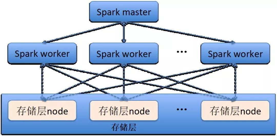 下图为 Spark worker 与存储层中 datanode 的关系。