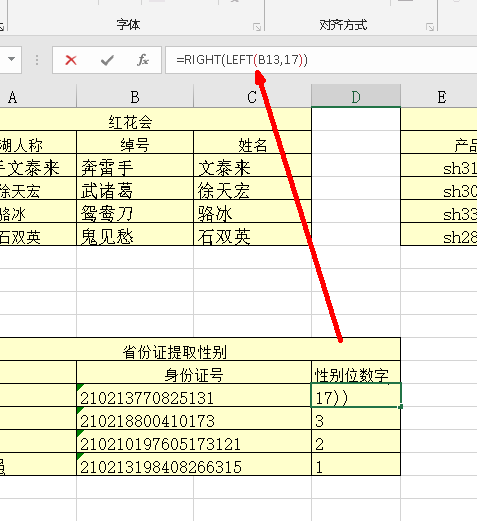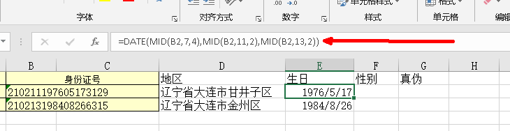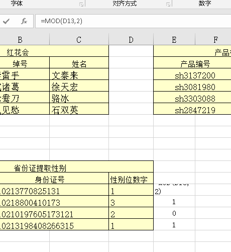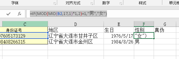 =IF(MOD(MID(B2,17,1)*1,2)=1,"男","女")