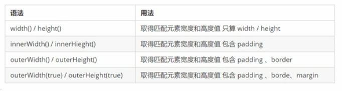 注意:有了这套 API 我们将可以快速获取和子的宽高,至于其他属性想要获取和设置,还要使用 css() 等方法配合。