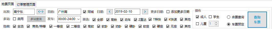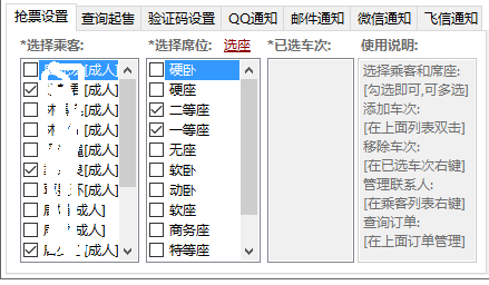 至此,最简单的抢票过程就完成了。但只会这些肯定是抢不到过年的票的,只能用来简化平时买票的工作。要抢过年的票,必须得懂得软件中每个地方到底是做什么用的才行。