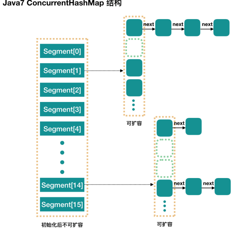 意思,所以很多地方都会将其描述为分段锁。注意,行文中,我很多地方用了“槽”来代表一个