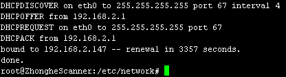 自动获取IP的网卡配置文件内容“auto eth0”表示网卡随机启动;“iface eth0 inet dhcp”表示网卡ip地址自动获取;其他都不需要配置。使用nano保存、退出组合键保存文件内容。使用网卡重启命令重启即可获取到IP地址。