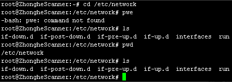 将用户当前目录切换到网卡配置文件所在的目录,网卡配置文件所在的目录为“/etc/network/”。使用“cd /etc/network”命令切换到网卡配置文件所在目录。