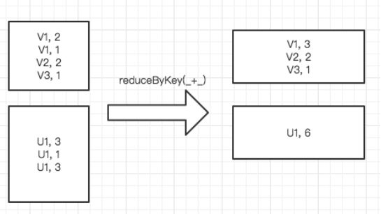 3)reduceByKey:reduceByKey 是比 combineByKey 更简单的一种情况,只是两个值合并成一个值,即相同的key合并value。