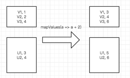 1)mapValues:(对Value值进行变换)原RDD中的Key保持不变,与新的Value一起组成新的RDD中的元素。因此,该函数只适用于元素为KV对的RDD。即针对(Key, Value)型数据中的 Value 进行 Map 操作,而不对 Key 进行处理。