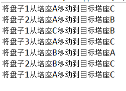 如果有三个盘子,那么我们将盘子1放到C塔座,盘子2放到B塔座,在将C塔座的盘子1放到B塔座上,然后将A塔座的盘子3放到C塔座上,然后将B塔座的盘子1放到A塔座,将B塔座的盘子2放到C塔座,最后将A塔座的盘子1放到C塔座上。