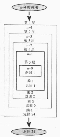 这段递归程序的边界条件就是n==0时,返回1,具体调用过程如下: