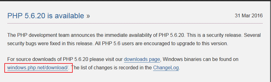 http://windows.php.net/download/,选择64位,线程安全版本,如下图所示: