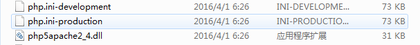 复制php目录中php.ini~文件中的一个,重命名为php.ini,作为PHP的配置文件。其中php.ini-development开发环境下使用,php.ini-production生产环境下使用。