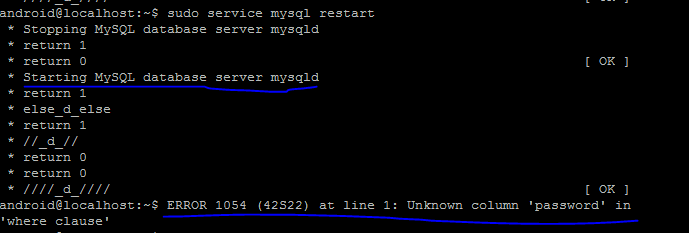 ERROR 1054 (42S22) at line 1: Unknown column 'password' in 'where clause'