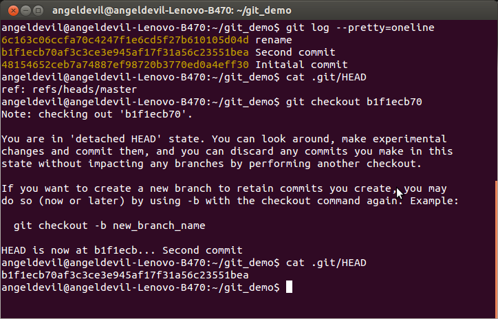 如果既没有指定文件名,也没有指定分支名,而是一个标签、远程分支、SHA-1值或者是像master~3类似的东西,就得到一个匿名分支,称作detached HEAD(被分离的HEAD标识)。这样可以很方便地在历史版本之间互相切换。比如说你想要编译1.6.6.1版本的git,你可以运行git checkout v1.6.6.1(这是一个标签,而非分支名),编译,安装,然后切换回另一个分支,比如说git checkout master。然而,当提交操作涉及到“分离的HEAD”时,其行为会略有不同,详情见在下面。