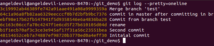 如果在master分支上执行git rebase test,会把master分支的提交历史进行修改,可以使用git log仔细观察rebase前后,master分支上的commit hash id。
