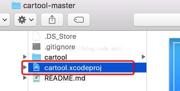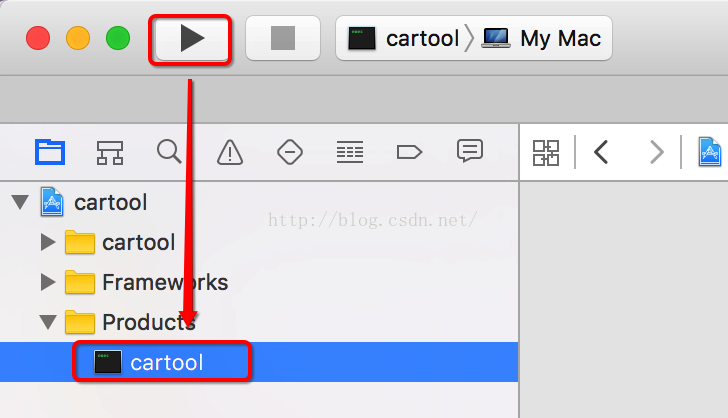 在工程下的Products文件夹中找到cartool,然后show in finder。