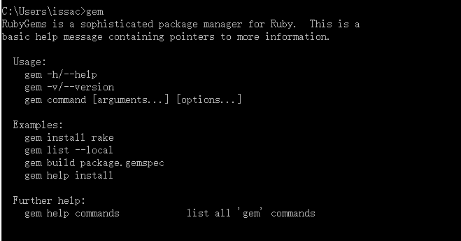 win+R打开win下的终端,首先是用命令——gem,测试rubyinstaller是否安装成功;