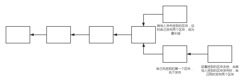 2)就是为了赚取正常的出块奖励,挖到第一时间不发布,那么其他人还会接着上一个区块挖,自己延着已挖到区块的挖,减少该区块的竞争。如果自己已经挖到第二个区块,当其他人宣称挖到第一个区块之后,自己把手里的两个一起发布,成为最长合法链。这种做法风险大,要以为别人挖出第一个区块时,自己能够挖出第二个,否则当别人挖出第一个发布时,自己手里只有一个,这时候是等长链,只能去竞争。