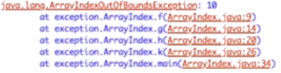 例子里的意思是:刚开始发生异常是在第9行的f函数中,f函数又被第14行的g函数调用了,f函数又被…调用…最后被34行的main函数调用了