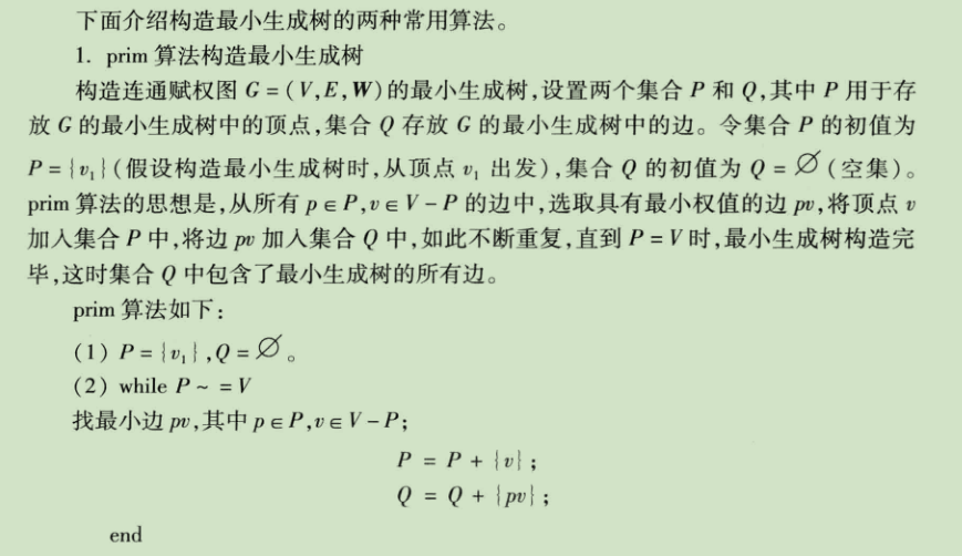 Prim算法类似病毒感染的过程,其中P中存放的是已经计算出的顶点(即前一顶点与后一顶点构成的边在最短路径上),然后遍历P中所有的顶点,找出与V-P中所构成的边的最小值得那个顶点a,然后将顶点a归入P中,如此迭代,最终P=V,即算出了最小生成数。