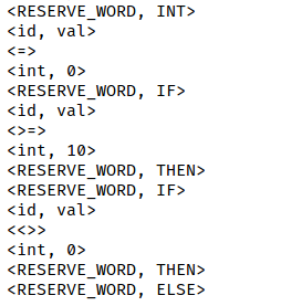 std::cout << "<" << getTagStr(reserveWordToken->tag) << ", " << getReserveWordTagStr(reserveWordToken->reserveWordTag) << ">" << std::endl;