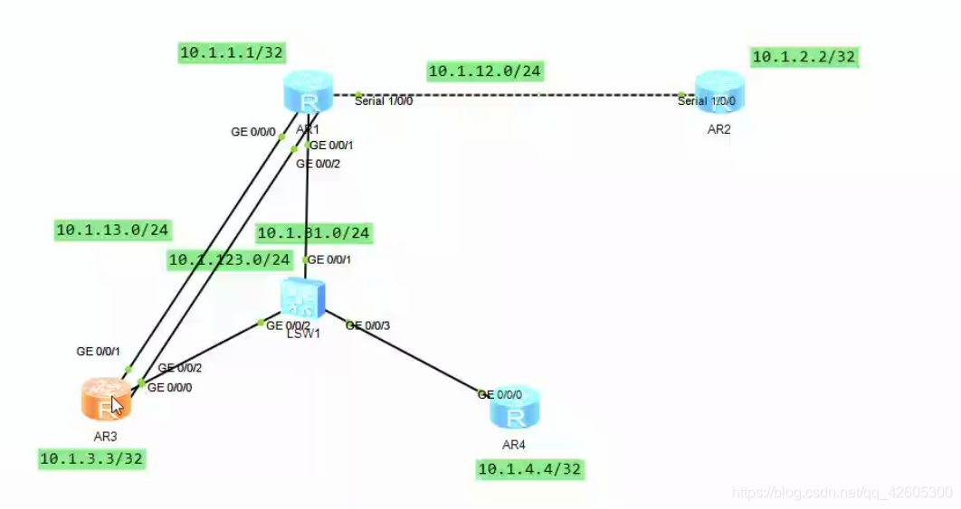 ip route-static 10.1.4.4 255.255.255.255 GigabitEthernet0/0/1 10.1.123.2
