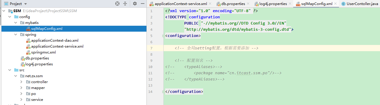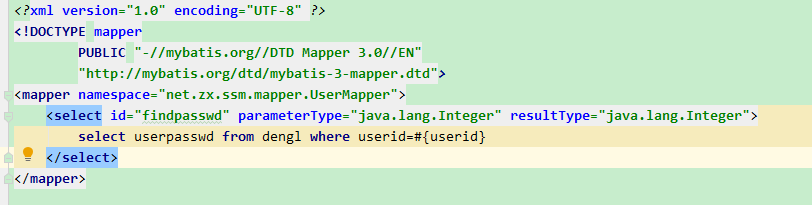- 在mybatis包中创建splMapConfig.xml文件。由于我们用mapper代理开发,只是表单登录,故splMapConfig.xml文件内容暂时不用配置。数据库的链接配置我们在spring文件中配置。