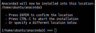 之后就提示你要将Anaconda安装在目录/home/ubuntu/anaconda3下面:(建议使用此目录)