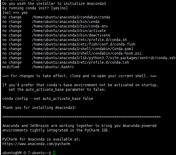 等待安装完之后,会询问是否把anaconda的bin添加到用户的环境变量中,输入yes