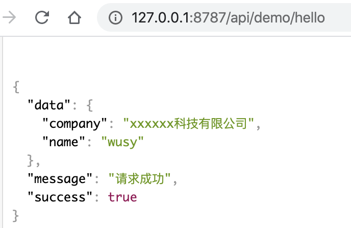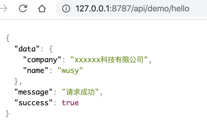 运行应用,打开浏览器,在地址栏输入http://127.0.0.1:8787/api/demo/hello,观察结果