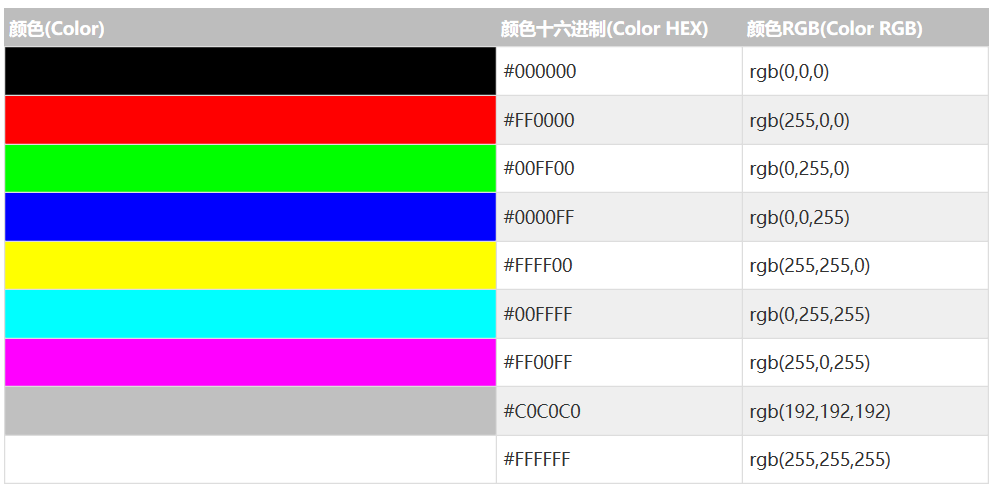 HTML的颜色由一个十六进制符号来定义,这个符号由红色、绿色和蓝色的值组成,简称RGB。