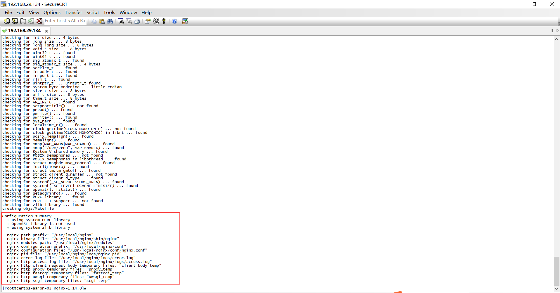 (2.9)继续2.4步骤中的检查安装环境./configure --prefix=/usr/local/nginx,成功