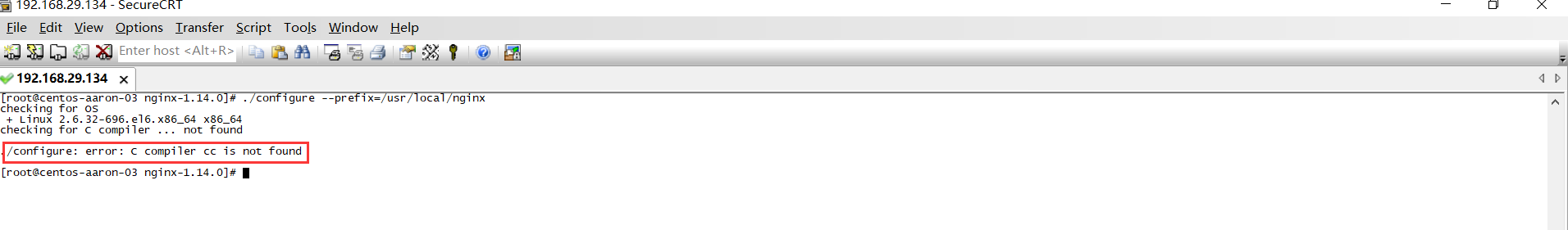 (2.5)由于上一步骤提示缺少C编译器,先安装c编译器;yum -y install gcc