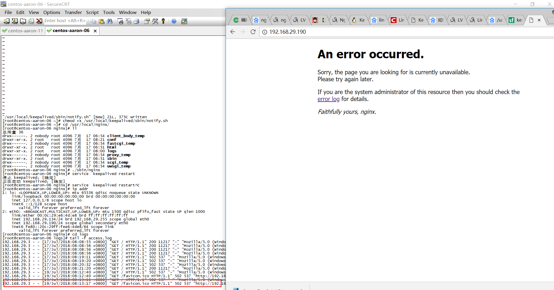 在mater活着的时候,浏览器访问一次,master上nginx日志多一条访问记录;